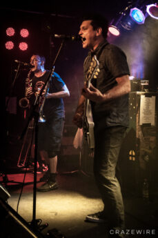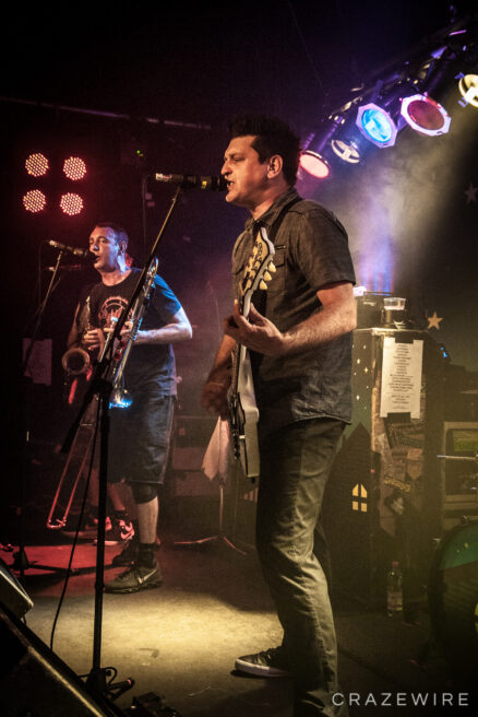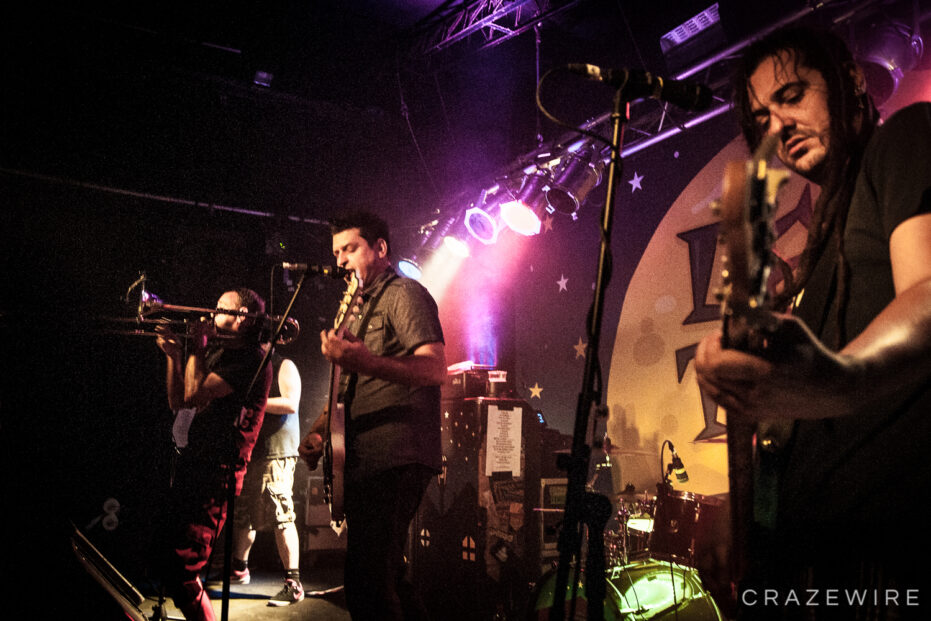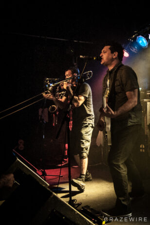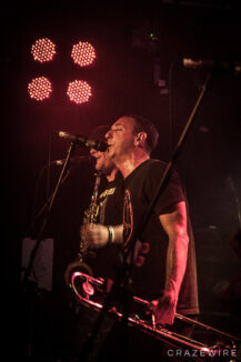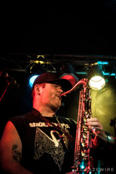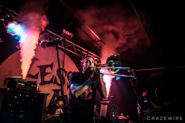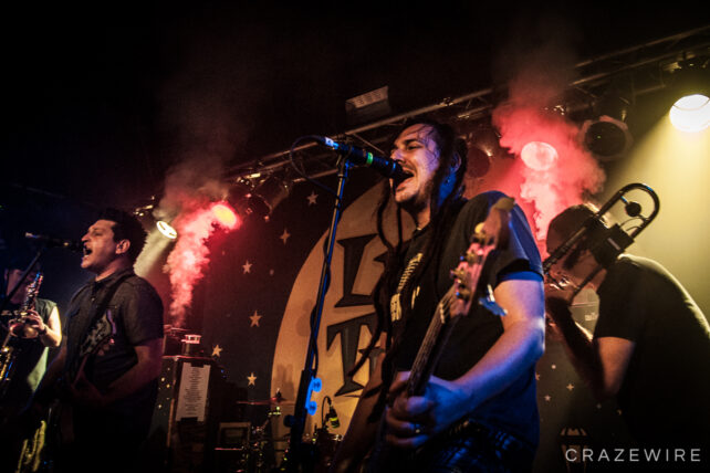 Im Kölner Underground haben Less Than Jake so einige Gimmicks am Start. Farbige Rauchsäulen, diese merkwürdigen Laubbläser-Toilettenpapier-Schussgeräte, Less Than Jake-Luftballons, ein Crowdsurfendes Bandmaskottchen und ein Plüschwildschwein auf dem Kopf von Posaunist Buddy verleiten zum lächeln.